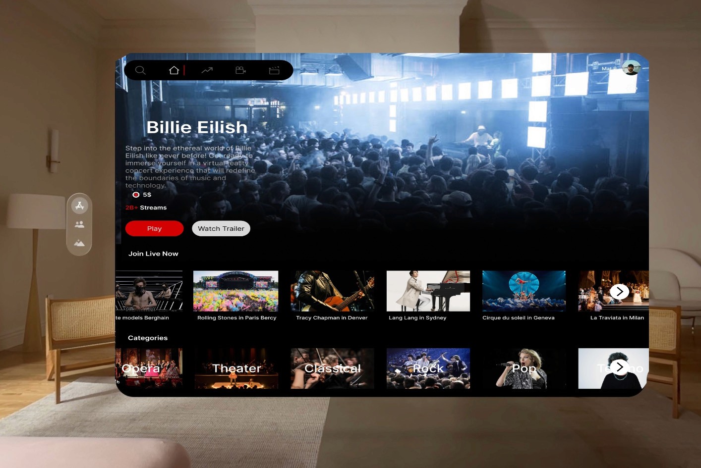 Your content streams live or on-demand to audiences worldwide through the LIVEO app, exclusively designed for VR headsets.